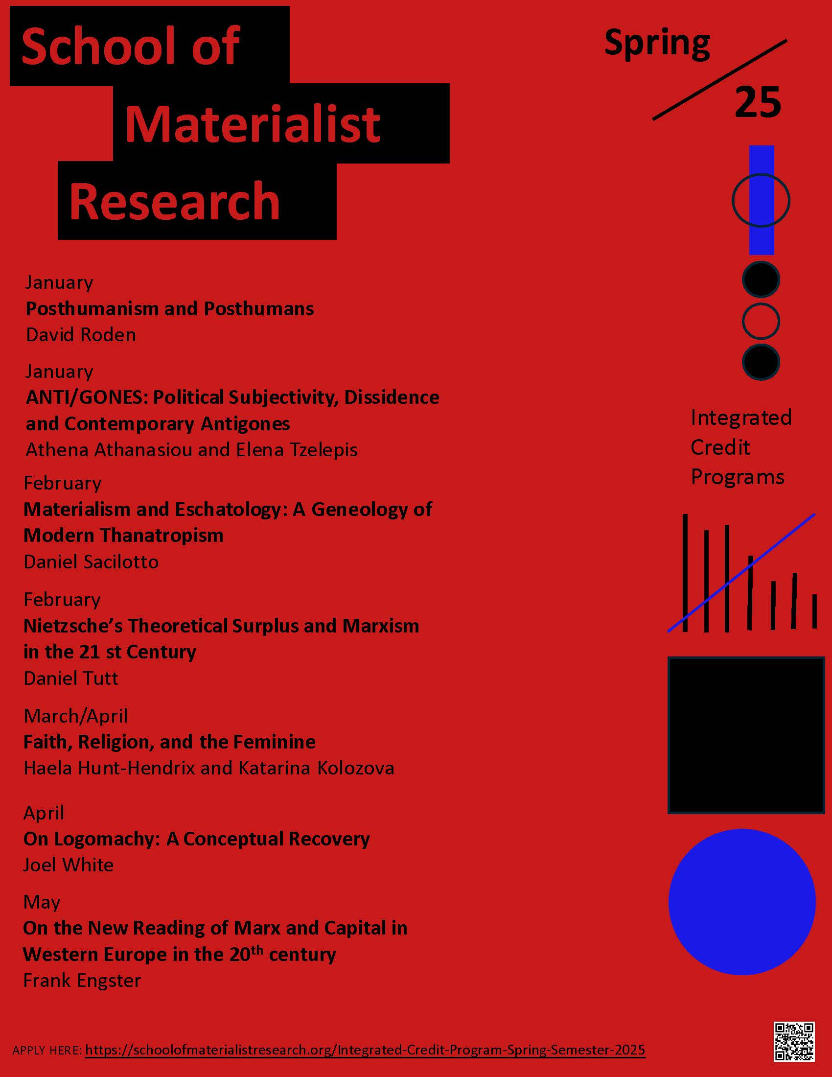 As always, our intensive study program offers access to the original research of our teachers and engages you in a process of research as study and vice versa, combining topics emerging from philosophy, the sciences and arts. Materialism is a theme that intersects all areas and topics not only to be defended in its many forms but also to be challenged in a productive fashion. Marxism features prominently too, but we also open space for discussions of religion, Nietzsche, posthumanism, feminism and much more. Our two feminist courses are thought collectively and emerge from actors who either way function collectively (the Anti/Gones collective, whereas Haela Hunt-Hendrix is affiliated to Liturgy while teaching here jointly with Katerina Kolozova). Here is a summary of the overall content of the program: in Tutt’s course, Nietzsche and Marx are examined as productive antagonists whose insights radically diverge from one another, but whose itineraries of thought and investigations share a surprising degree of similarity; Anti/Gones will invite us to delve into “Antigone’s act”: her resistance and dissent, focusing on the dialectics between subjection and subjectivity; we will engage in 6 sessions offered by Engster dealing with the new ways of reading Marx’ Capital revisiting Marx-oriented social critique in the 1960s, with a focus on the new reading of Marx in Germany: the critique of the commodity form and the return of philosophy to Marxism: Georg Lukács, Eugen Paschukanis, Alfred Sohn-Rethel, Walter Benjamin, to name a few; we will offer introduction into Roden’s “unbound posthumanism, the disconnection thesis and the problem of posthuman agency, Nietzschean agency and hyperagency; Sacilotto will present a new form of materialist epistemology by way of engaging in examining an ontological matrix that challenges the idealist or “correlationist” results of post-Kantian philosophy, while thinking of the material conditions that present a limit to life (death), and even to materiality itself as a whole (extinction); Joel White will offer an in-depth examination of the concept of logomachy transduced as a thermoinformatic logic of sense, revisiting the notion of logomachy from Plato to Derrida via discussions from the fields of physics and related STEM fields; an artist and a political philosopher, Hunt-Hendrix and Kolozova will engage in examining the links between faith, religion, femininity, Marxism and orthodox gnosis.